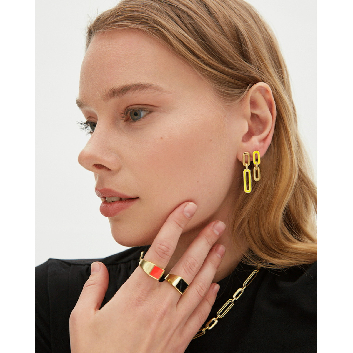 BICOLOR SHORT LINK EARRINGS WITH FLUORESCENT YELLOW ENAMEL